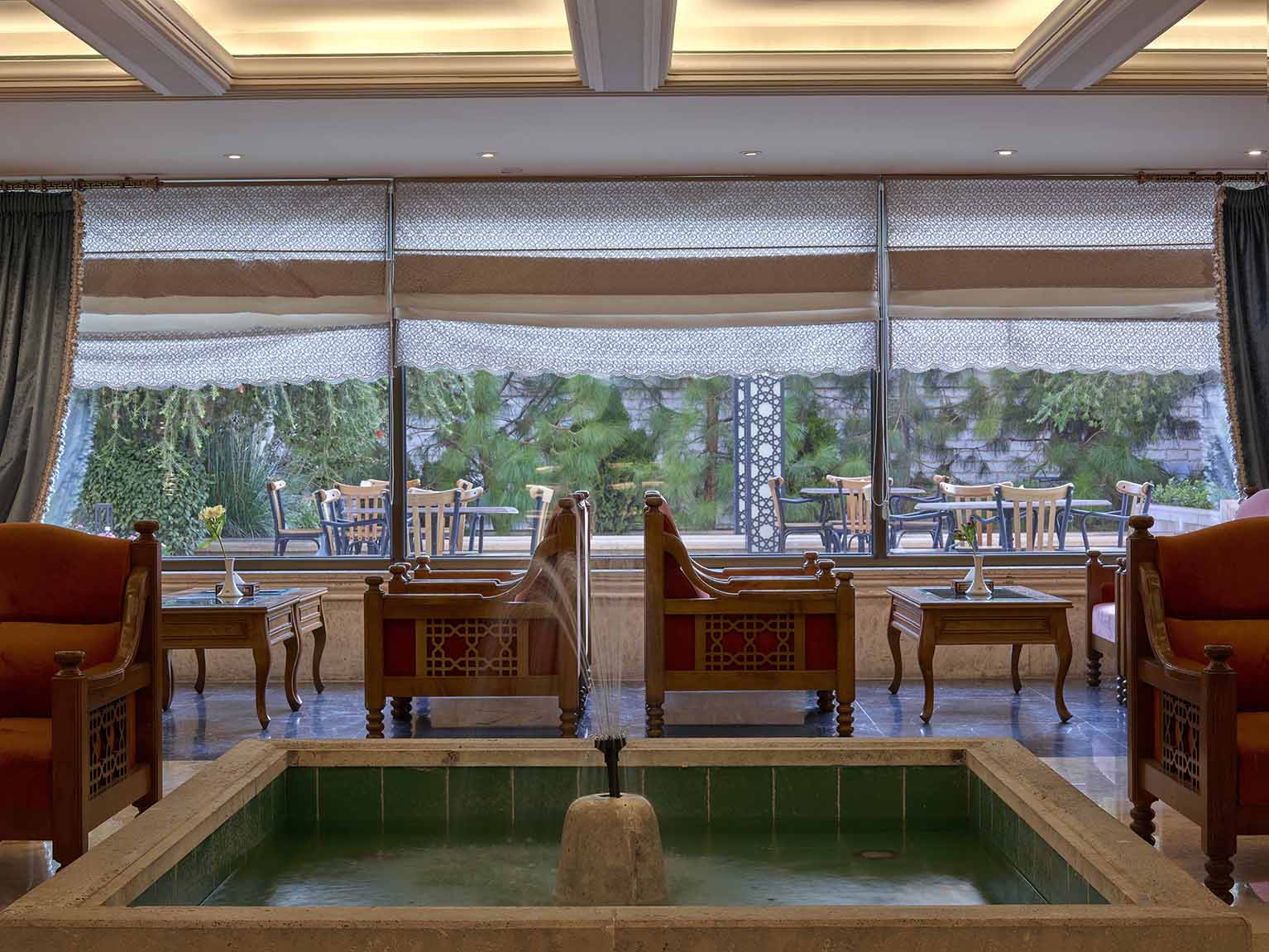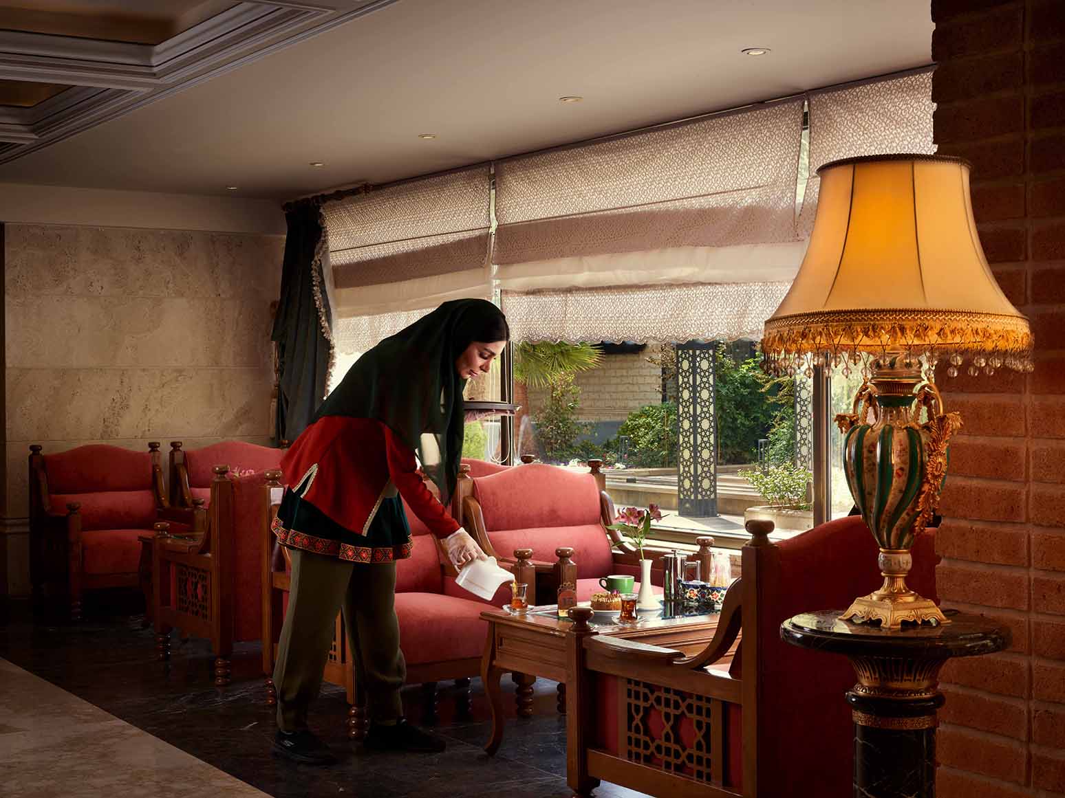 سوئیت مجلل و زیبای زندیه در فضایی بسیار شیک و متفاوت همراه با مبلمان مجلل و دکوراسیون ویژه و بالکن مخصوص آراسته به گل و گیاه و با چشم اندازی بسیار زیبا و بی نظیر از سویی به دروازه قرآن و از سویی دیگر به ارگ زیبای کریمخان می باشد.